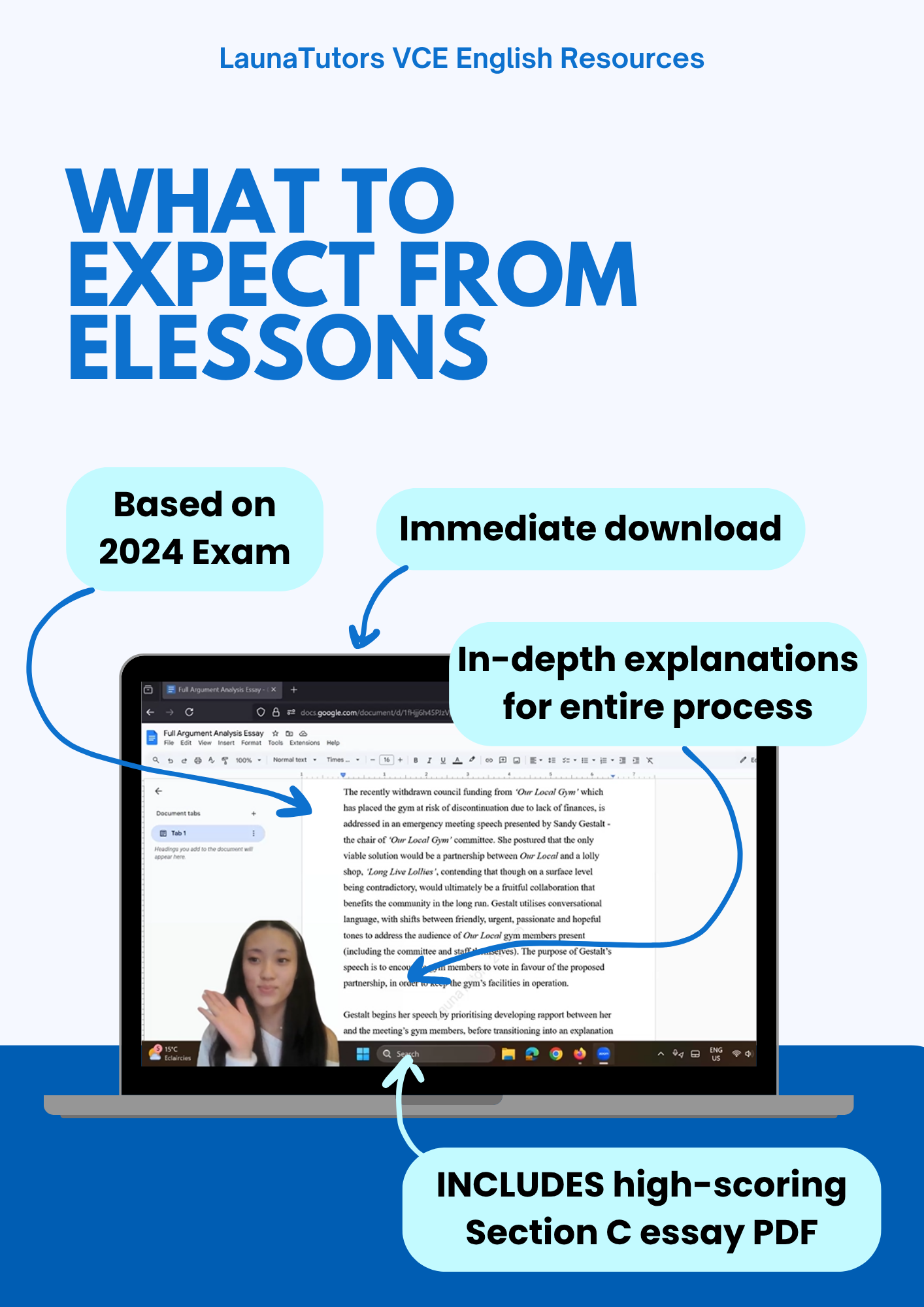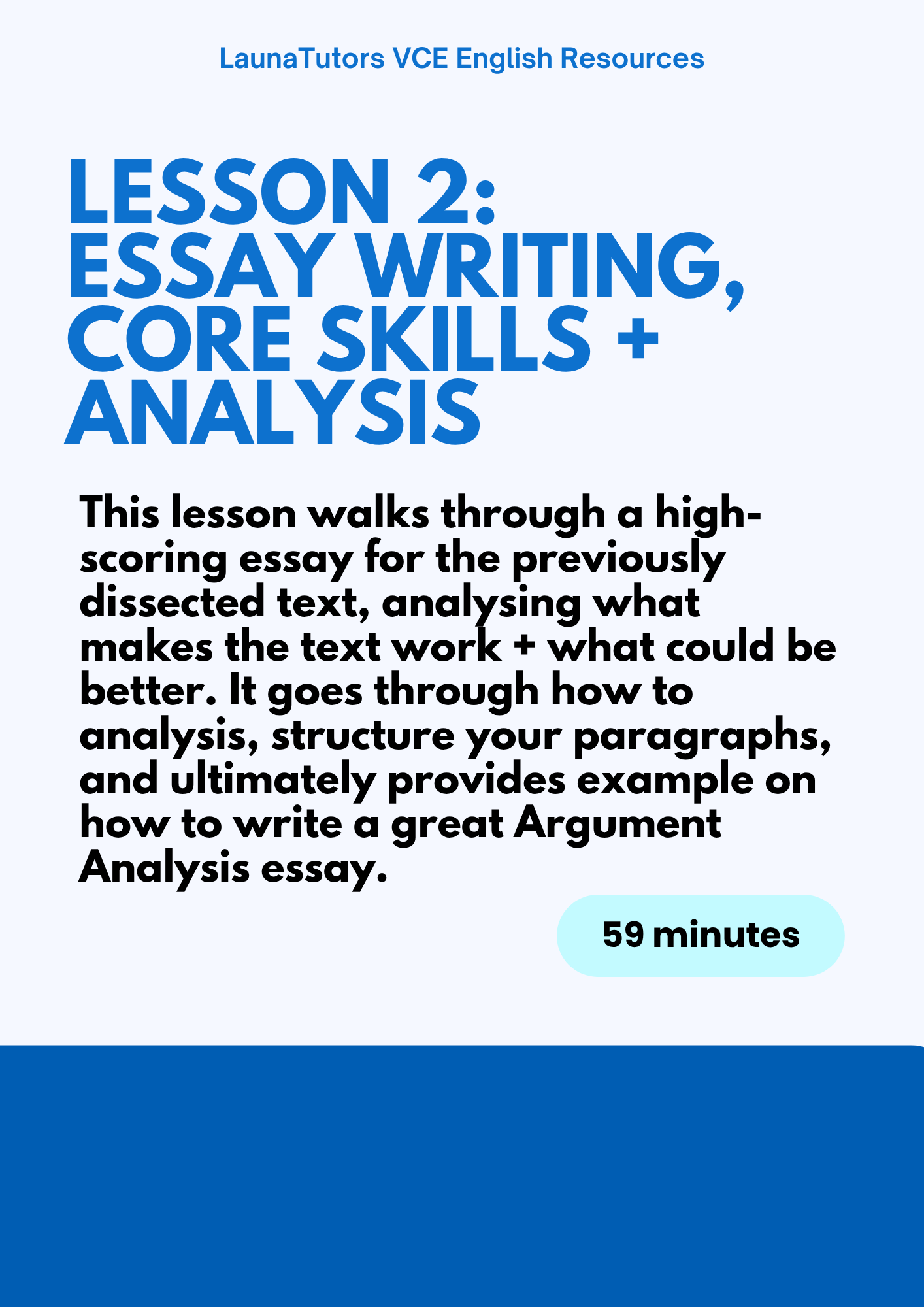 This on-demand lesson walks you through the entire argument analysis essay writing process, from beginning to end. Embedded with analysis, theory, structures, essay planning and more, you should be able to complete the lesson with a greater sense of clarity and direction for your VCE English SACs and exam.