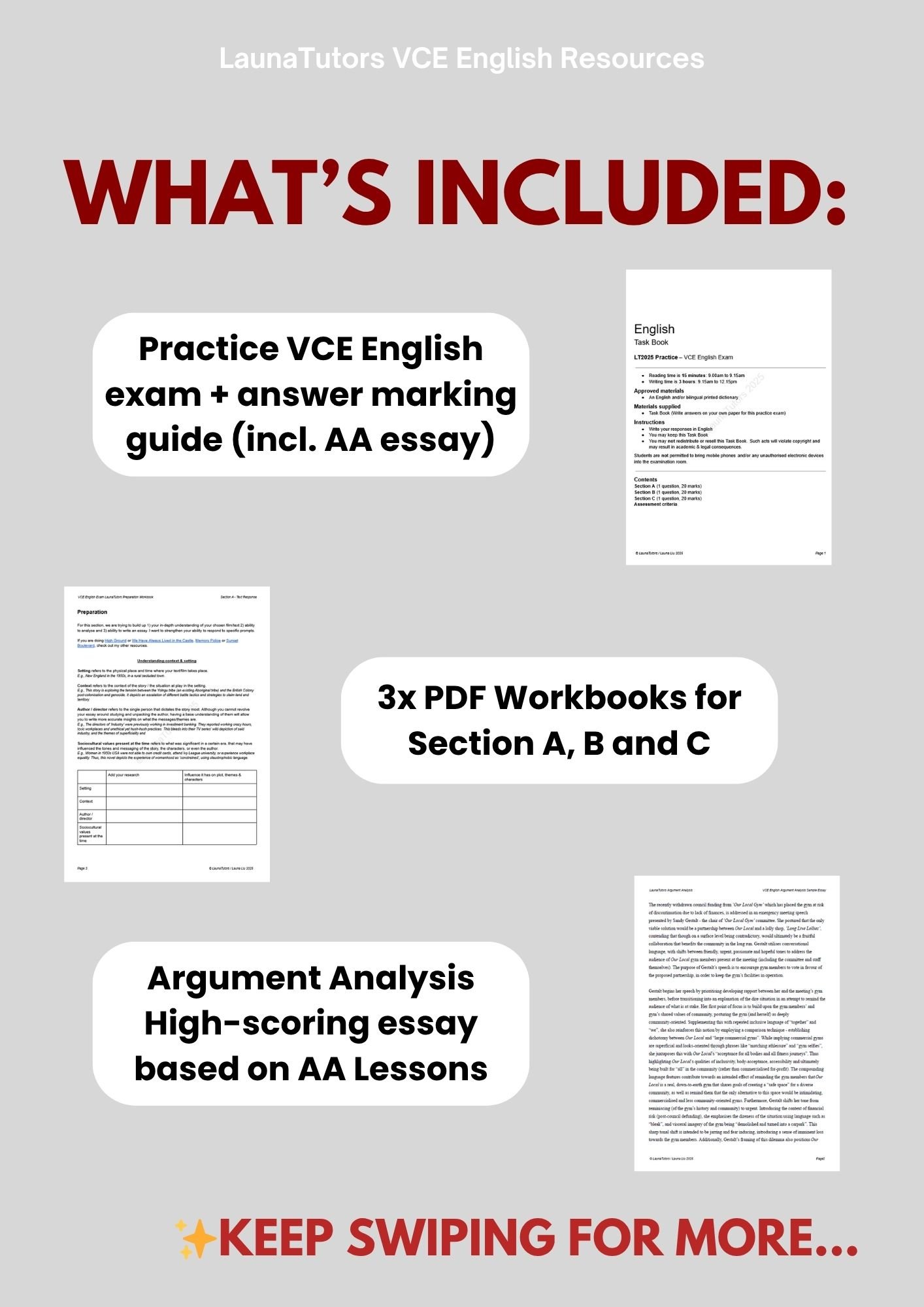Everything within this pack is copyrighted by LaunaTutors / Launa Liu. Please keep in mind that copyright infringement is illegal under Australian law. This includes reselling which can have legal consequences. Reuploading this guide to content sharing websites such as CourseHero and Studocu is uploading intellectual property that does not belong to you – which can result in academic consequences at your high school or university.